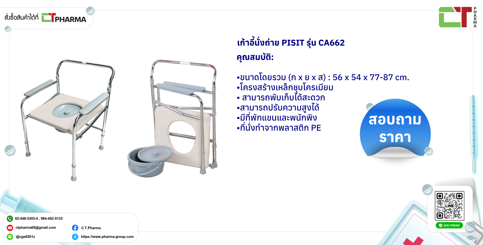 เก้าอี้นั่งถ่าย PISIT รุ่น CA662-01