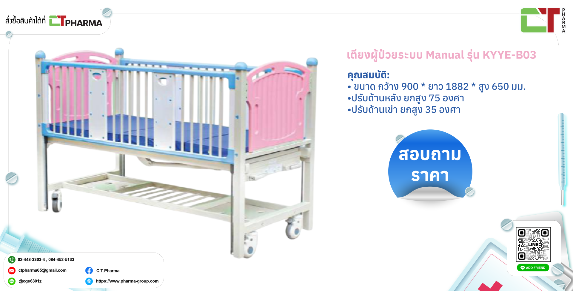 คุณสมบัติ: ขนาด กว้าง 900 * ยาว 1882 * สูง 650 มม. ปรับด้านหลัง ยกสูง 75 องศา ปรับด้านเข่า ยกสูง 35 องศา